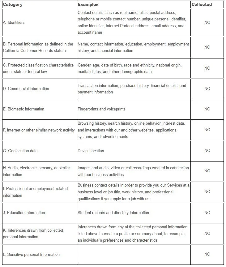 Do we process any sensitive personal information? Some of the information may be considered "special" or "sensitive" in certain jurisdictions, for example your racial or ethnic origins, sexual orientation, and religious beliefs. We do not process sensitive personal information.